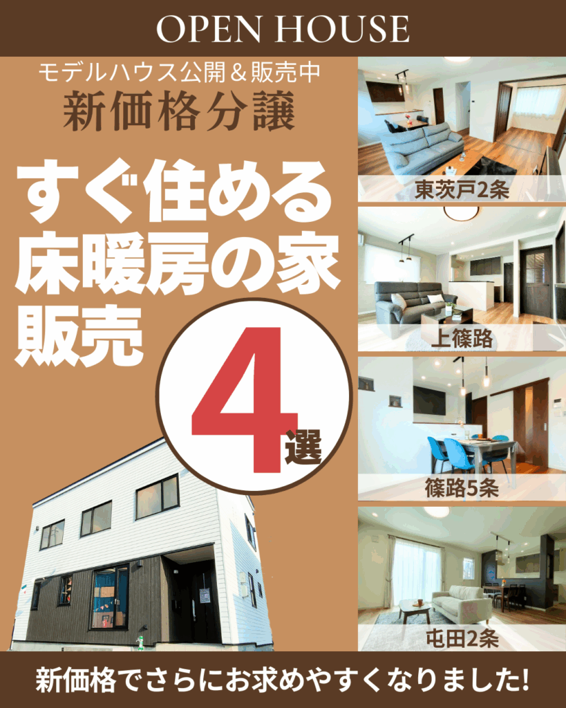 ■対象物件:弊社分譲住宅(グリーンタウン東茨戸、グリーンタウン上篠路、パーソナルタウン篠路5条、屯田2条5丁目)
