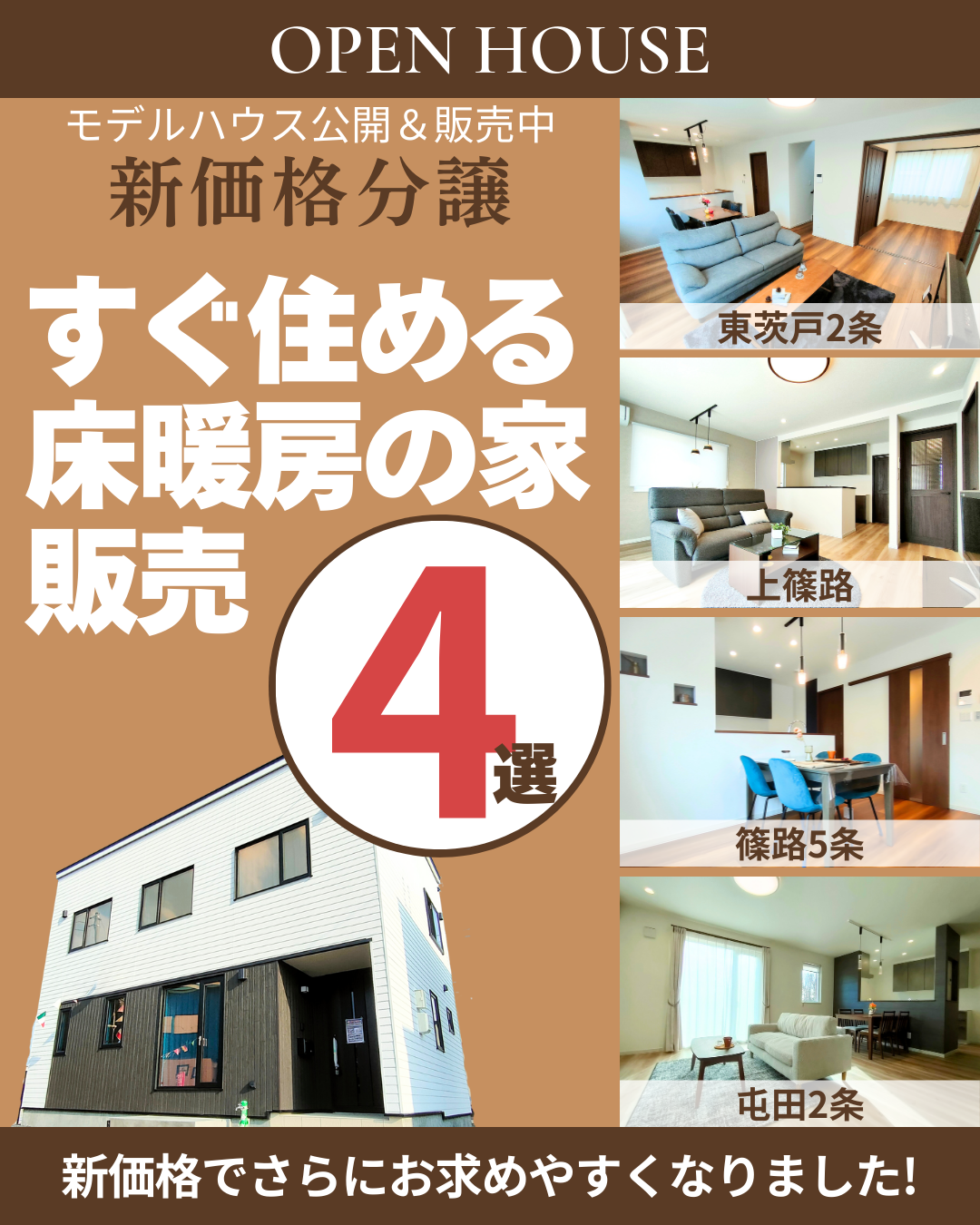 ■対象物件:弊社分譲住宅(グリーンタウン東茨戸、グリーンタウン上篠路、パーソナルタウン篠路5条、屯田2条5丁目)
