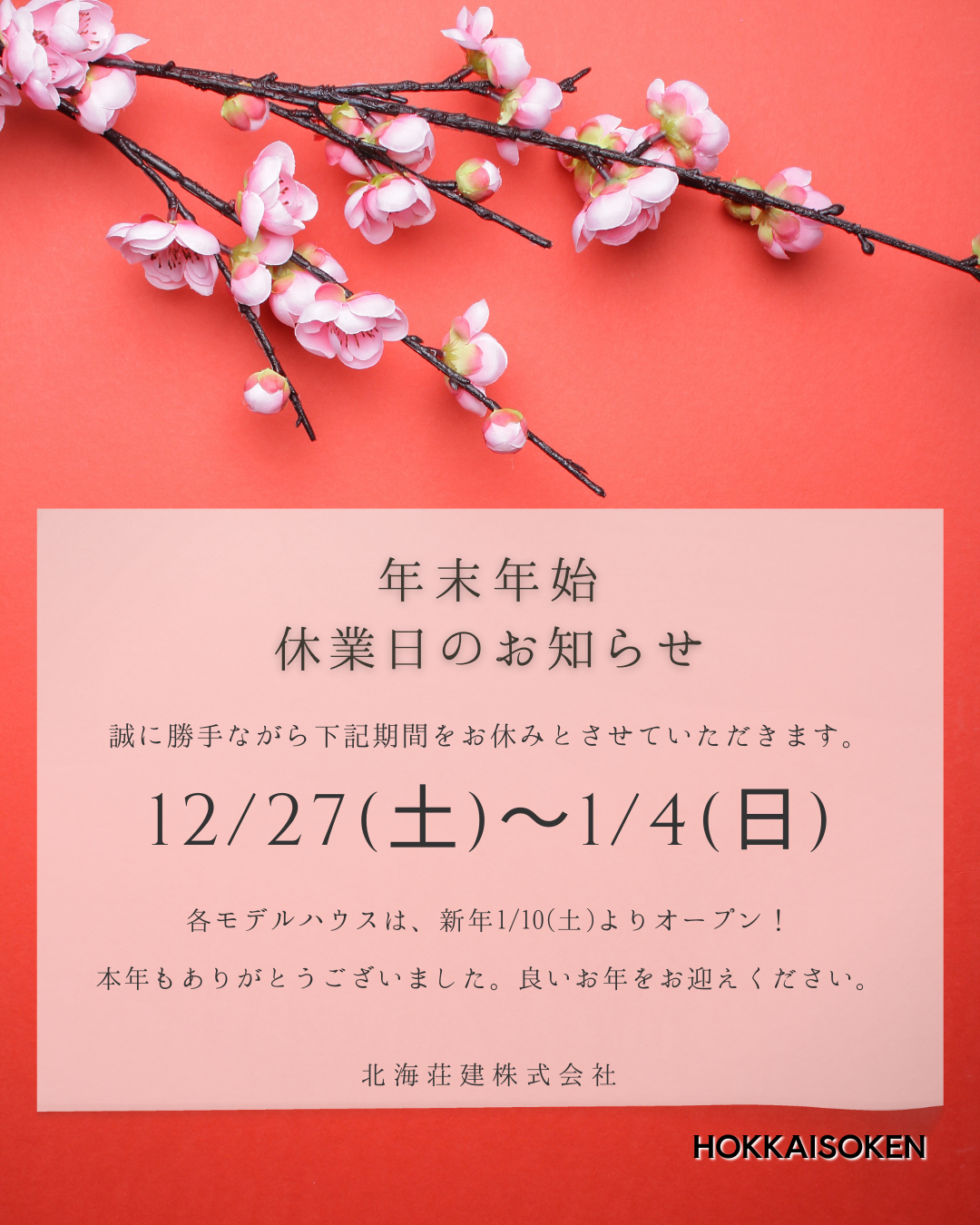 お休み期間中にいただいたお問い合わせは1月5日(月)以降に対応させていただきます。