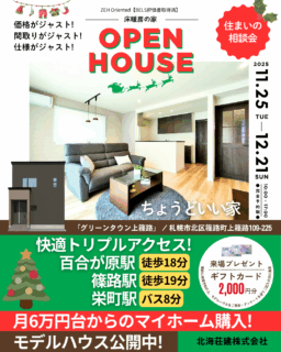 JR学園都市線「百合が原」駅徒歩18分、「篠路」駅徒歩19分、地下鉄「栄町」駅バス乗車8分「上篠路」大きく広がる!価値ある未来エリア!区画C-9モデルハウス!